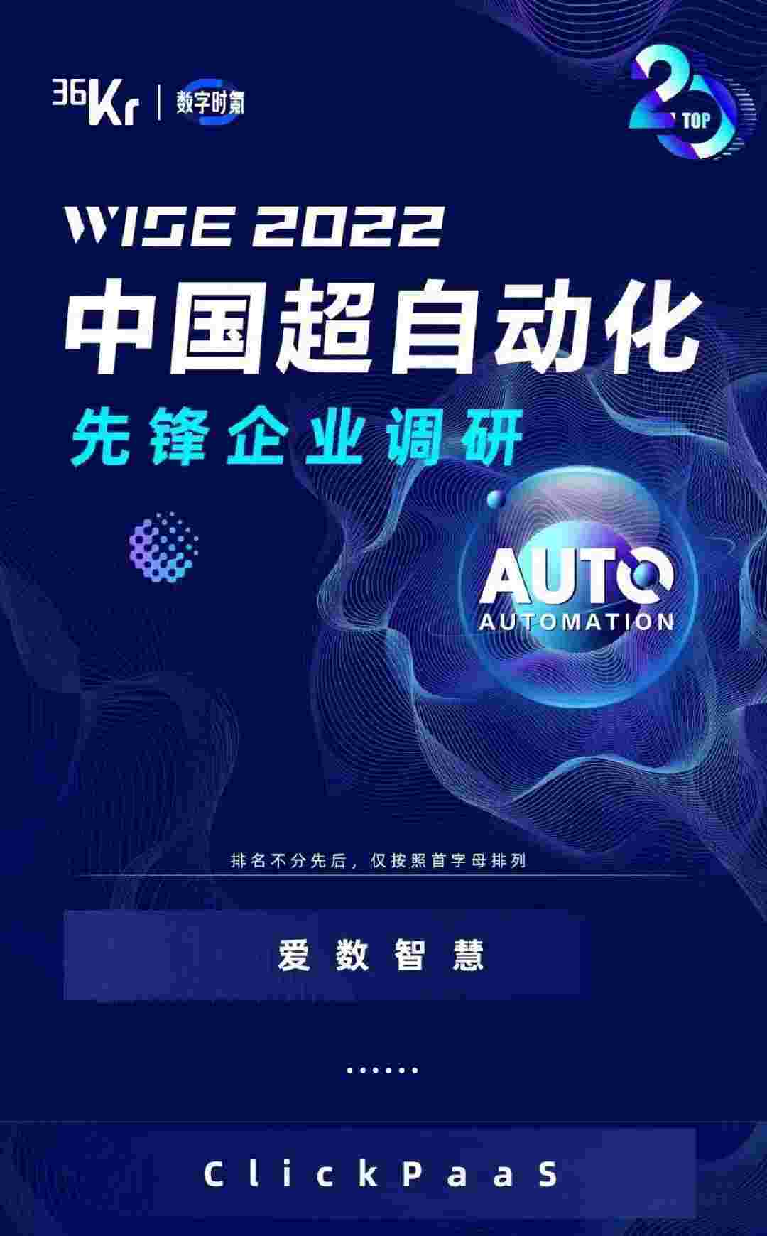 8月10日,,,,,,,,,由36Kr主办的WISE 2022中国超自动化峰会在杭州成功举办。。。。。。。。。。。小微钱包作为国内低代码PaaS平台的领军企业,,,,,,,凭借过硬的技术实力和优质的产品能力,,,,,,,,,在本次峰会中实力入选「2022年中国超自动化先锋企业」20强。。。。。。。