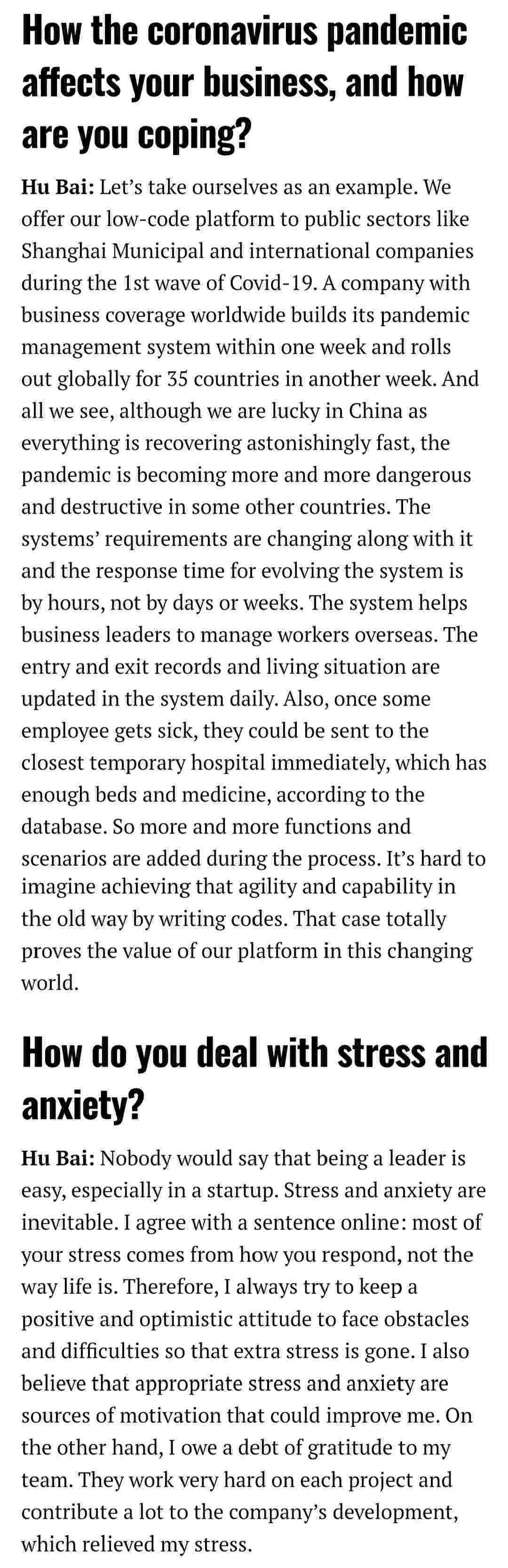 2021年年初,,,,,,,,爱湃斯科技CEO胡柏受邀接受法媒Startup.info的专访,,,,,,,,,,,,,,与Startup info的读者分享了自己的创业经历、、、、、、、、、、以及低代码平台小微钱包的创新之处。。。。。。。。。。