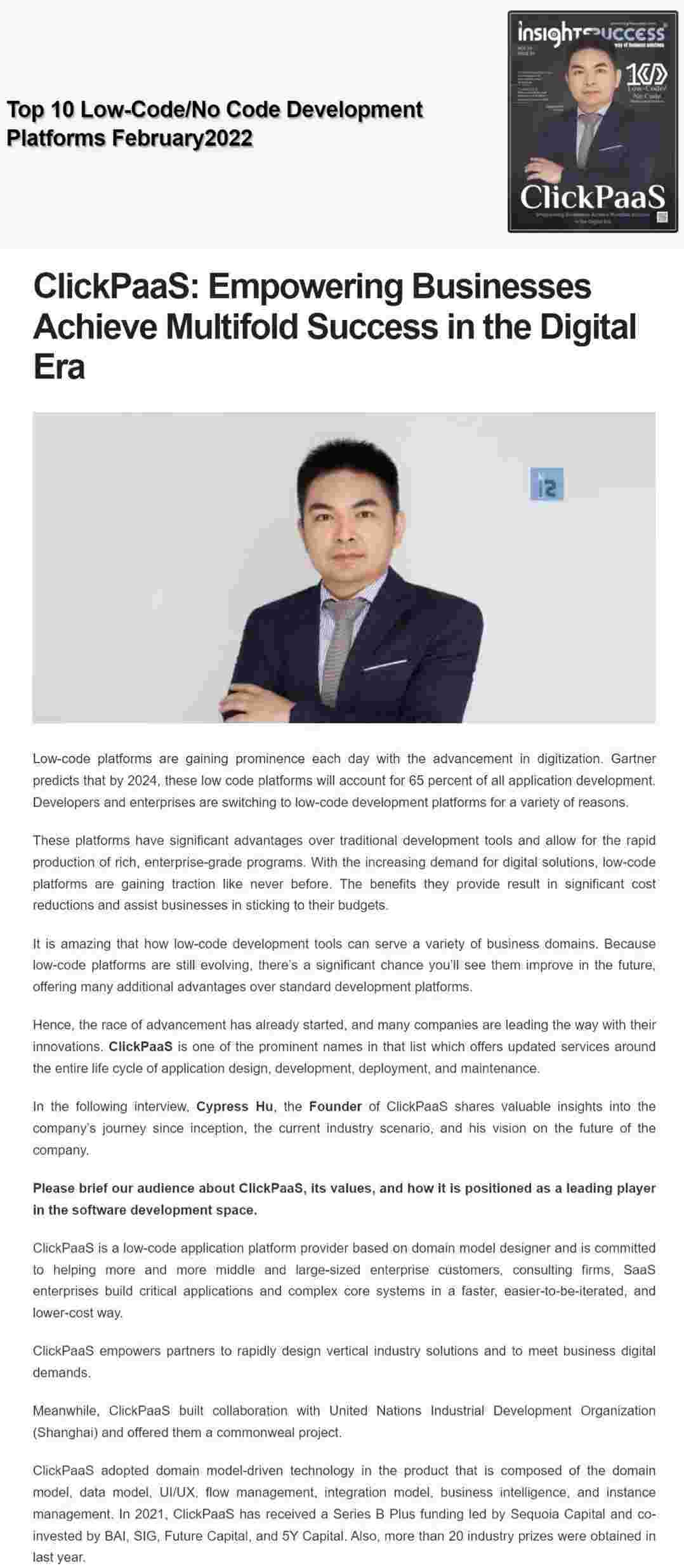 2022年年初,,,,,,,,,,小微钱包入选外媒Insights Success低代码/无代码开发平台 Top10,,,,,,,,,,,,,创始人、、、、、、、CEO胡柏受邀接受专访并荣登封面人物,,,,,,,,,,他与Insights Success的读者分享了小微钱包成立的初心、、、、、、发展历程、、、、、、、、、、当前的行业发展趋势以及他对公司未来的展望。。。。。。。。。。。。。